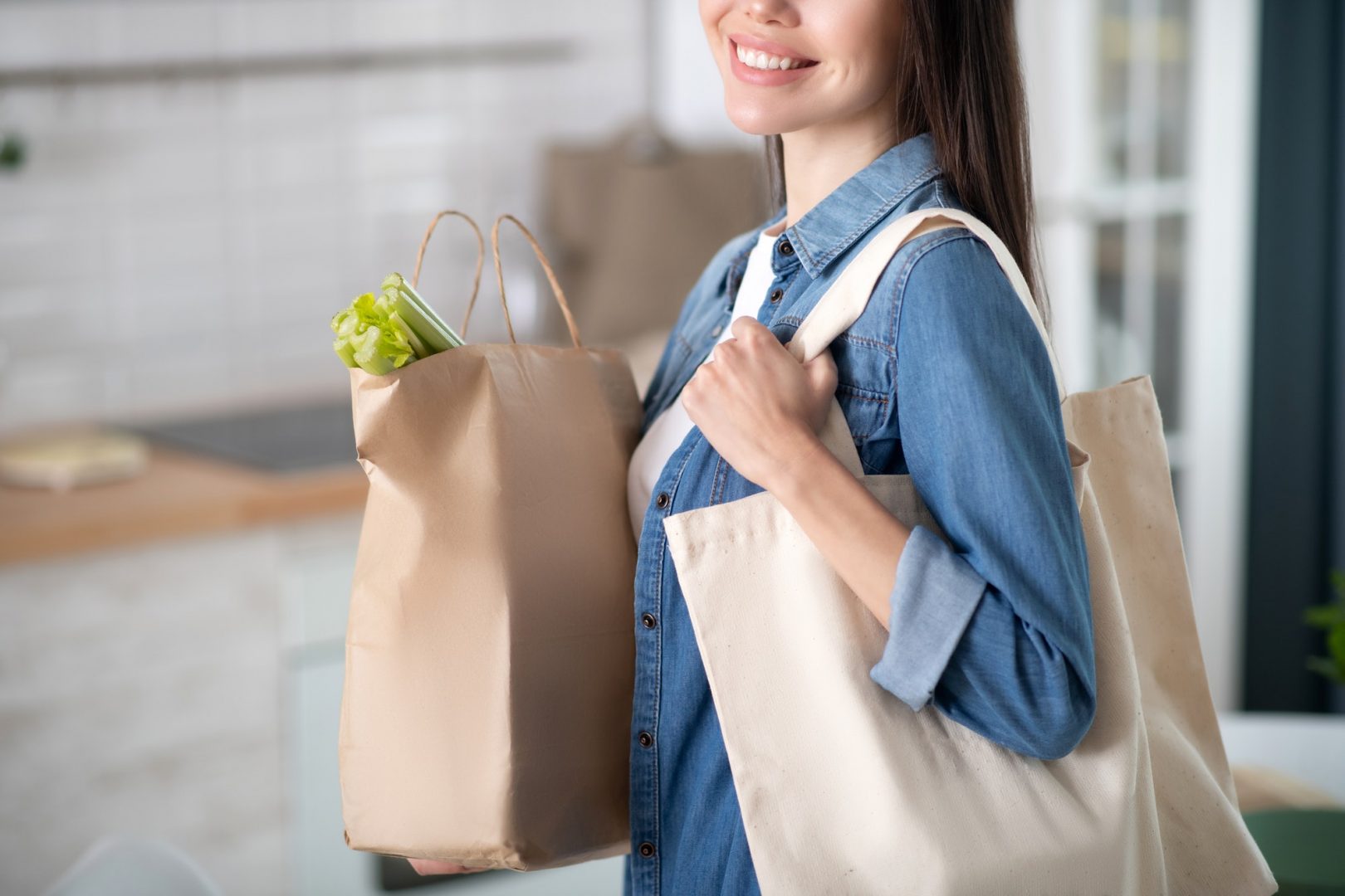 Les emballages kraft sont mis à disposition des clients des supermarchés et grandes surfaces pour le transport de fruits et de légumes.